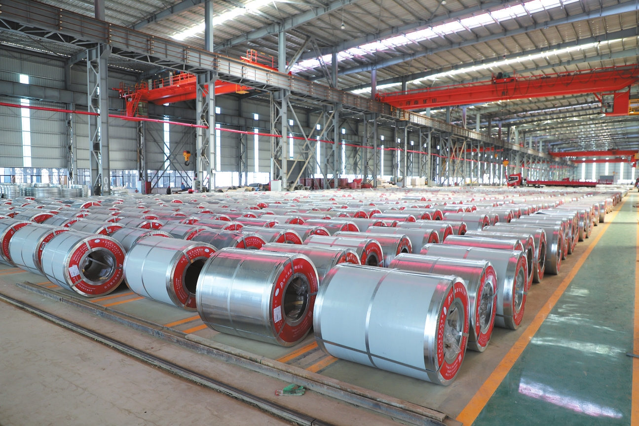 湖南攀达生产车间成品库镀锌卷。