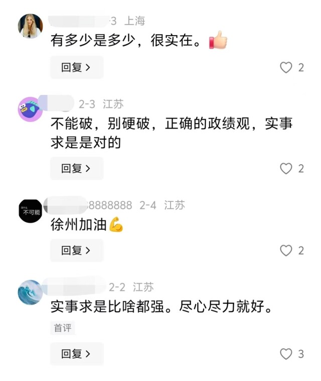 对此,广大网友,尤其是江苏的网友,纷纷点赞:“实事求是比啥都强,尽心尽力就好。”