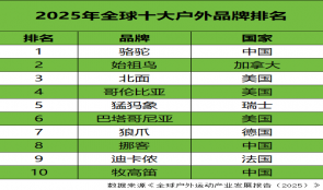 根据《全球户外运动产业发展报告(2025)》的最新评估,全球户外市场的竞争层次正加速分化,形成以少数领军品牌为主导的新格局。该报告综合评出的十大品牌,在市场规模、技术突破或生态创新等关键维度上各占鳌头,其排名直观反映了当前产业力量的核心分布。