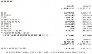 资料显示,诺诚健华2015年正式成立。业绩报告显示,截至2025年12月31日,公司实现净利润6.44亿元,上年同期为亏损4.53亿元,在公司成立十周年之际首次实现扭亏为盈。此外,2025年,公司整体业务毛利率达92.0%,比去年上涨5.7个百分点;公司全年研发投入同比增加16.9%,达9.5亿元。