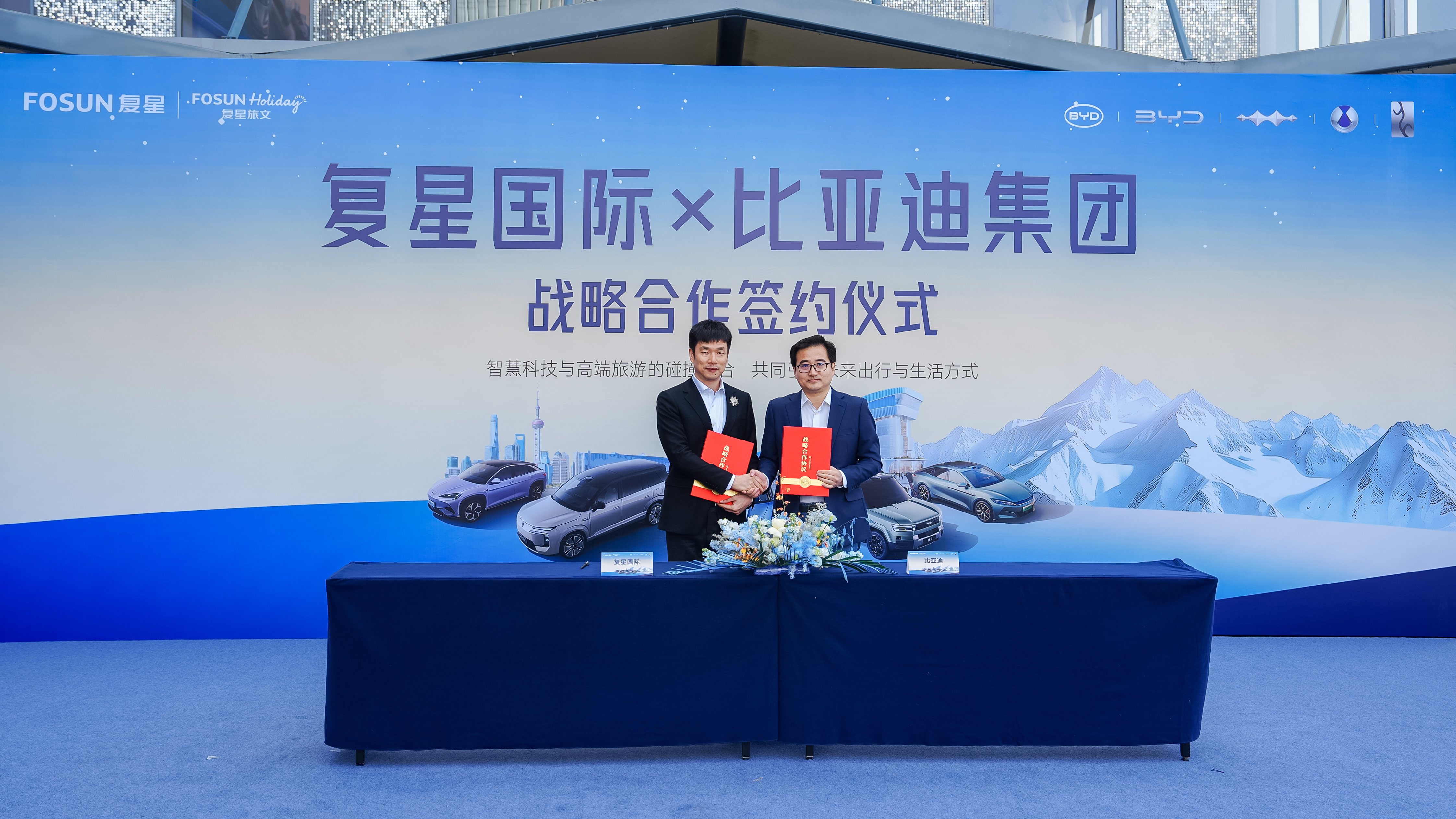 复星全球合伙人、复星旅游文化集团(简称“复星旅文”)首席执行官鲍将军与比亚迪集团品牌及公关处总经理李云飞代表双方正式签署合作备忘录。
