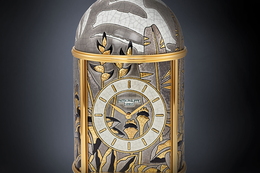 “2026年珍稀工艺时计”系列倾情呈献65件新作,包括23款圆顶座钟、10款怀表以及32款腕表,再次将全球钟表爱好者的目光聚焦于百达翡丽丰富多样的装饰技术上,囊括大明火掐丝珐琅、微绘珐琅、灰调珐琅、flinqué透明珐琅、金箔珐琅、Fauré珐琅、手工雕刻、手工雕饰纹、宝石镶嵌等众多古老技艺,并将其推向炉火纯青的崭新境界。今年,百达翡丽推出品牌首款镶嵌珍贵宝石的圆顶座钟。Ref. 22000M-001“金刚鹦鹉”为孤品臻作,采用掐丝珐琅工艺,点缀微绘珐琅细节,色彩缤纷的珐琅与宝石交相辉映,令作品愈显精美典雅。孤品怀表Ref. 992/198J-001“弗拉门戈”采用掐丝与flinqué透明珐琅工艺,点缀微绘珐琅与手工雕刻细节,描绘弗拉门戈舞者于聚光灯下翩然起舞的场景。