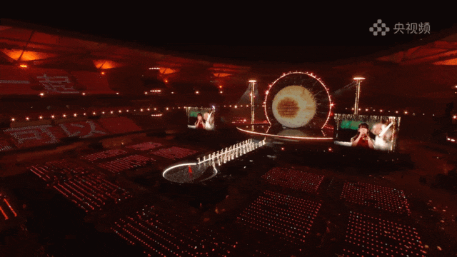 光,也是这场叙事中无声的语言。灯光总监董江从鸿蒙系统的开机动画中汲取灵感,将极具辨识度的“星环”造型贯穿整个场馆空间。设计团队不仅用数百台灯光设备在舞台上空构建了一个直径31米的超级光环,更在体育场内竖立起8组高达24米的立体灯光塔,让每一位观众都被笼罩在“在一起”的视觉叙事之中。