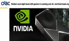 【环球网科技综合报道】4月19日,据CNBC报道,深耕游戏领域30年的英伟达,曾因显卡(GPU)技术成为游戏玩家心中的标杆,如今却因AI业务的爆发,与核心粉丝群体渐行渐远。曾经支撑英伟达走出破产危机的游戏业务,已不再是公司的发展核心,这让许多老玩家倍感失落。