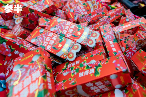 只在包装上“花式整活”还不够,参半还邀请了188东北男团集体穿上实用又时尚的大花袄棉服,品牌吉祥物牙哥也不甘示弱,穿着经典花棉袄和游客们互动,可谓是把东北的时尚大花元素玩到了极致。
