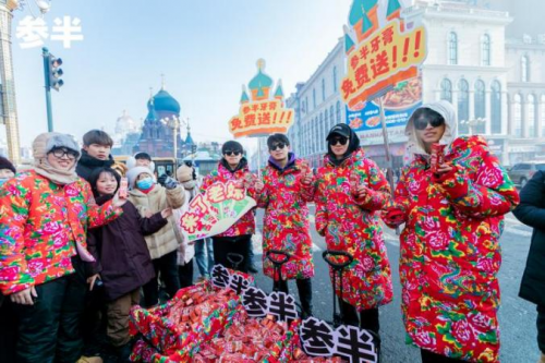 1月26日,哈尔滨各大热门景点前都出现了大批花棉袄的身影。仔细了解发现,来自广东深圳的口腔护理品牌参半,在哈尔滨开展了为期四天的免费牙膏派送活动,2万份“东北限定款”牙膏让本地市民和游客们都感受到了来自南方的温暖。