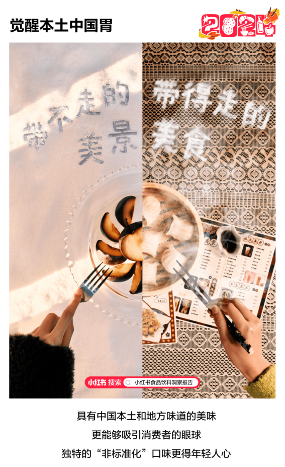 文化自信的语境下,对于本土文化的认同与尊重,是这一届年轻人的显著特征之一。在小红书中#家乡的味道 #寻找风味小城 等与地域相关的话题,成为高热度内容,用户一方面展现着自己对本土文化的热爱,另一方面也在通过相似的文化背景,探索关于自我身份认同的表达。