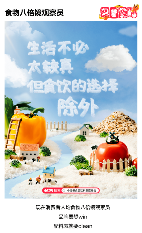 ,不仅会主动了解产品原料对身体的影响,同时也开始追求原材健康、自然与有机。在小红书热门讨论中,#配料表干净的 #清洁标签 #有机零食 等食饮趋势话题成为热词。与此同时,在关于食饮相关产品的科普与推荐内容中,有高达 61%的用户表示会更愿意相信小红书中来自大众用户的经验分享,因为内容的真实性会更强。