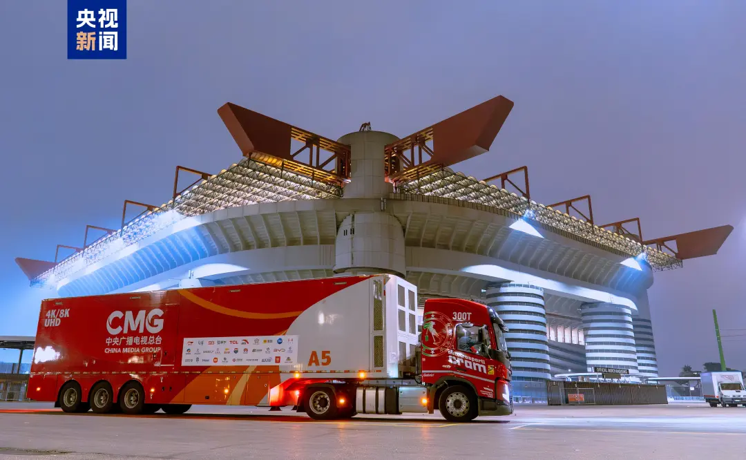 亮相米兰!中央广播电视总台“中国红”冬奥转播车队进驻圣西罗体育场
